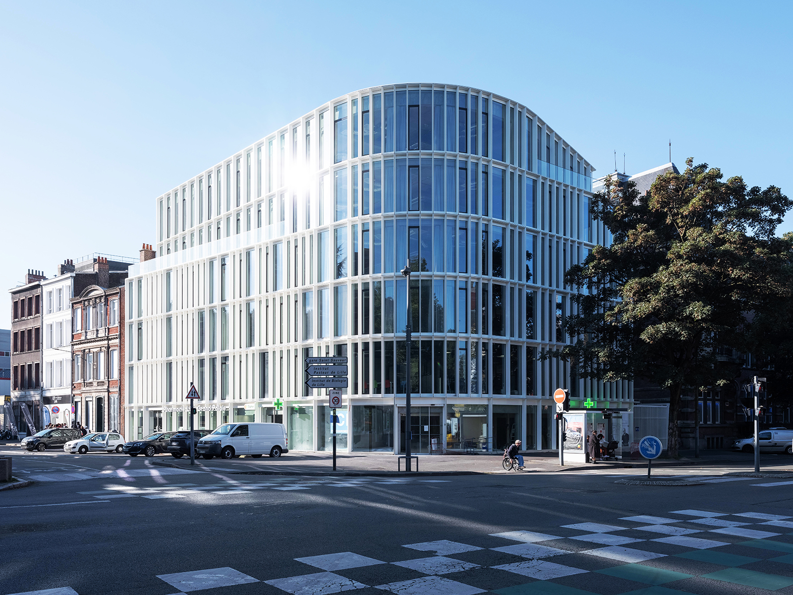 Le projet s’inscrit dans un vaste projet de restructuration de l’îlot occupé par l’Institut Pasteur de Lille depuis 1898 qui borde le boulevard Louis XIV. L’îlot jouit d’une situation privilégiée du fait de son implantation le long d’un des axes d’accès au centre de la ville. Le projet est l’occasion de renouveler l’image de l’IPL sur l’espace public. La complexité du projet est due à l’histoire de l’îlot et à l’intrication des divers bâtiments existants qui forment un ensemble patrimonial composite et disparate. Sur la partie de la parcelle située à l’angle Nord-Est de l’îlot sur l’espace public, le programme prévoit d’implanter des commerces et des bureaux, tandis qu’en cœur d’îlot, sont prévues des surfaces destinées à de l’événementiel incluant un auditorium de 400 places.